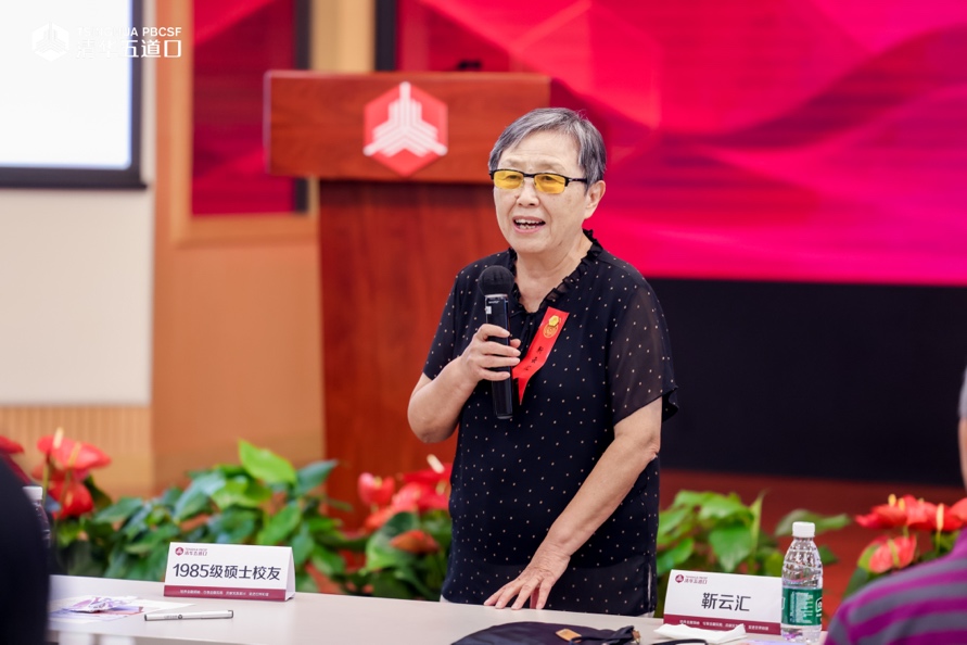 符泽慧的分享从怀念、感恩与传承三个方面展开。她谈到,从课堂上激烈的案例研讨,到运动场上挥洒汗水的拼搏,再到实习实践中的初步探索,五道口为她的职业发展奠定了坚实基础。她特别提到,在从一级市场转向二级市场的职业转型过程中,老师和校友们给予了巨大支持和帮助,体现了五道口人团结互助的精神传统。最后,她表示将传承道口精神和光荣传统,以专业能力服务金融行业高质量发展,并在人工智能与科技革命的新时代中贡献道口人的力量。